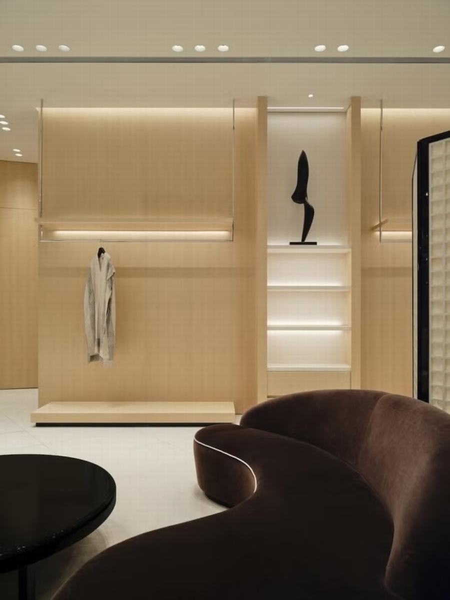 UNICA ATELIER南京德基广场精品店的设计,以“梦想衣橱”为灵感,结合品牌十周年的时尚艺术沉淀,创造出一个充满艺术感与精致感的沉浸式空间。通过流动的线型结构、南京非遗文化元素的融合,以及材质的碰撞,店铺空间不仅展示了UNICA品牌的独特设计语言,更体现了品牌追求随性与精致平衡的精神。