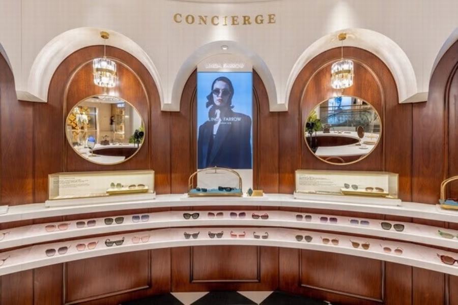 店内的每一件展品都是LINDA FARROW品牌历史与设计创新的代表。从经典的优雅款式到前卫的破格设计,展品风格横跨多个时期,充分展示了LINDA FARROW品牌的时尚演变。最特别的是,店内还展示了限定的典藏珍品,包括由好莱坞巨星阿尔·帕西诺在电影中佩戴过的独特款式,这不仅是对品牌历史的致敬,也是对其前瞻性设计的展示。