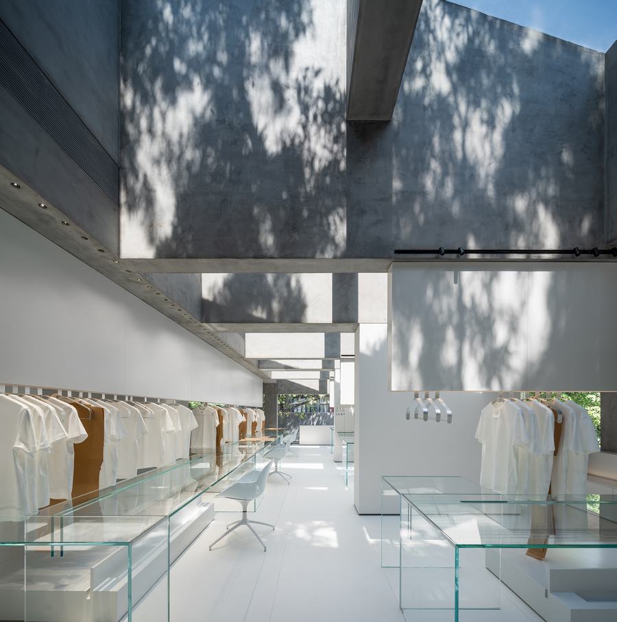 无论是一个狭窄街道上的小建筑的角色定位,还是一个新品牌开始时的表达,冷静和开放的感觉都是思考和起草之初的决定。决策比之后的整个计划的所有形式都重要,并控制着它。创作过程中的“白”,并不是逻辑形式中的白色和简单。它有着平静和安静的特殊含义,我们通过技术将其融入到建筑中。