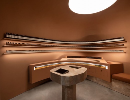 Aesop Milano的设计灵感源于这座城市1964年开通的第一条地下快速运输线路。设计师们深入研究了那条红线所代表的慷慨地下空间,将耐腐蚀的材料如橡胶、石头和金属管巧妙地转化为未来感十足、符合人体工程学的构件。这种转化不仅是对历史的致敬,更是对现代设计的挑战和创新。 走进Aesop Milano,首先映入眼帘的是大理石斑纹瓷砖和绿色隔墙所构成的独特空间。大胆的红色扶手环绕着不同高度的码头,为每 [...]…