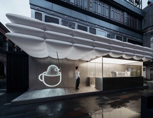 位于上海南京西路丰盛里,这家25平方米的咖啡店位于石库门建筑和商业空间的密集区域中。它紧挨着地铁站,邻近不断的交通和人流量。在熙熙攘攘的场景中建造一个安抚人心的“情感地标”成为我们的首要任务。 使用“反建筑”的方法,我们应用大面积的玻璃和磨砂金属来创造一个白色和灰色的延伸和透明的空间。同时,弯曲的屋顶和温暖的照明缓和了寒冷、严格的意象,将刚性与柔软结合在一起。 屋顶一直是我们设计中的关键空间元素。 [...]…