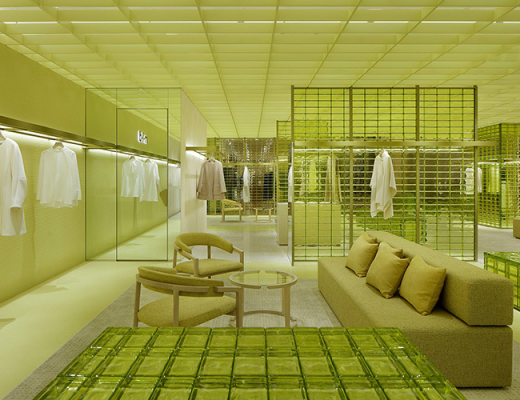 m-i-d创新的商店概念LIGHT HOUSE以其独特的黄色主题和多彩收尾的素材,为顾客带来了一种全新的空气感和个性。这个现代品牌形象的商店概念以其强烈的商店个性而闻名,通过运用黄色玻璃块的通透分区和迷宫般的布局,创造出艺术装置般的空间平衡。 商店内部的设计以玻璃块编织的网格和线条秩序的天花板为特色,增加了空间的透明感。与此同时,柔和色调的地板砖和金属百叶形成了鲜明的对比,营造出舒适和温馨的氛围。 [...]…