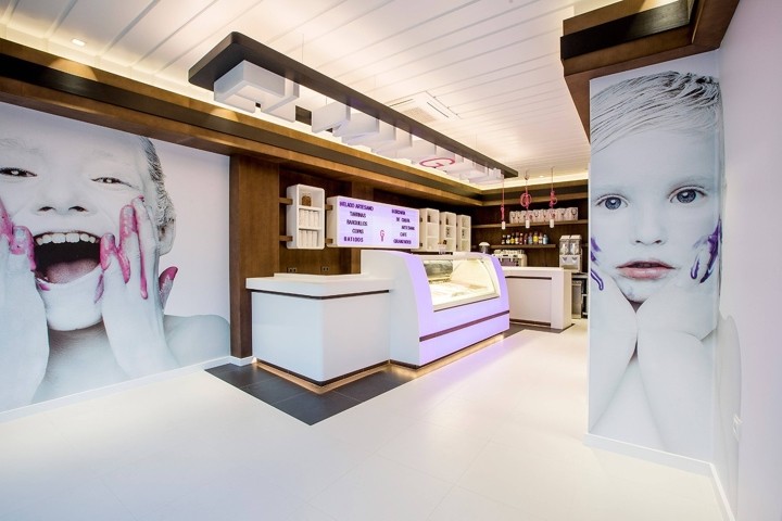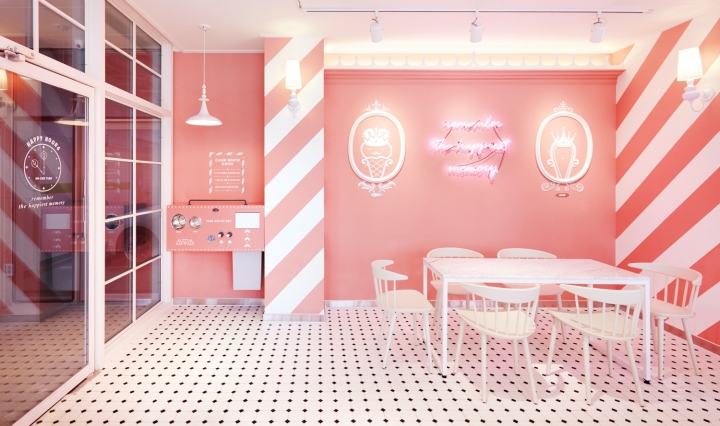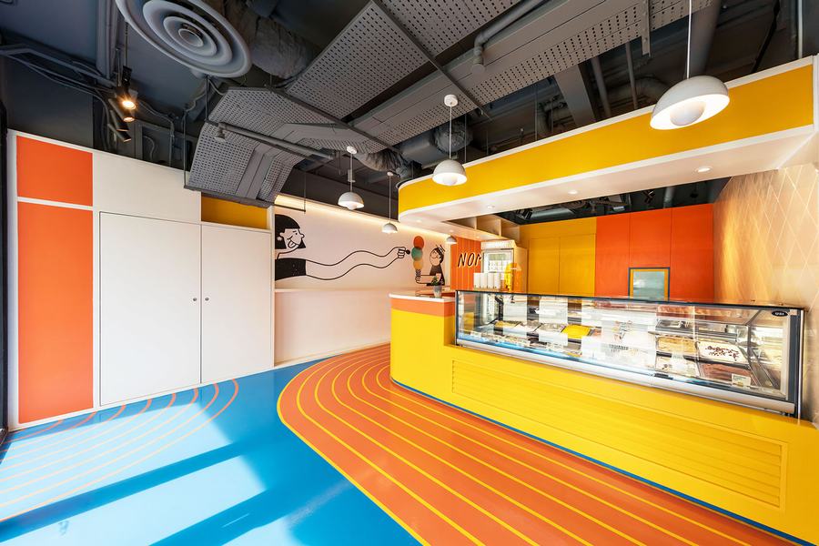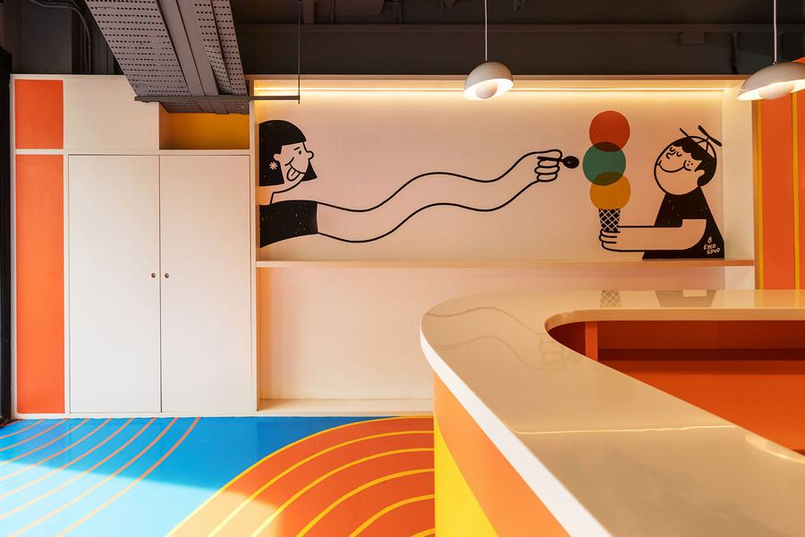 品牌对比色中的大胆色彩和古怪的插图是一些不错的内部细节,可让您的手机在这个冰淇淋店尽情享受 Instagram 上值得拍摄的照片。