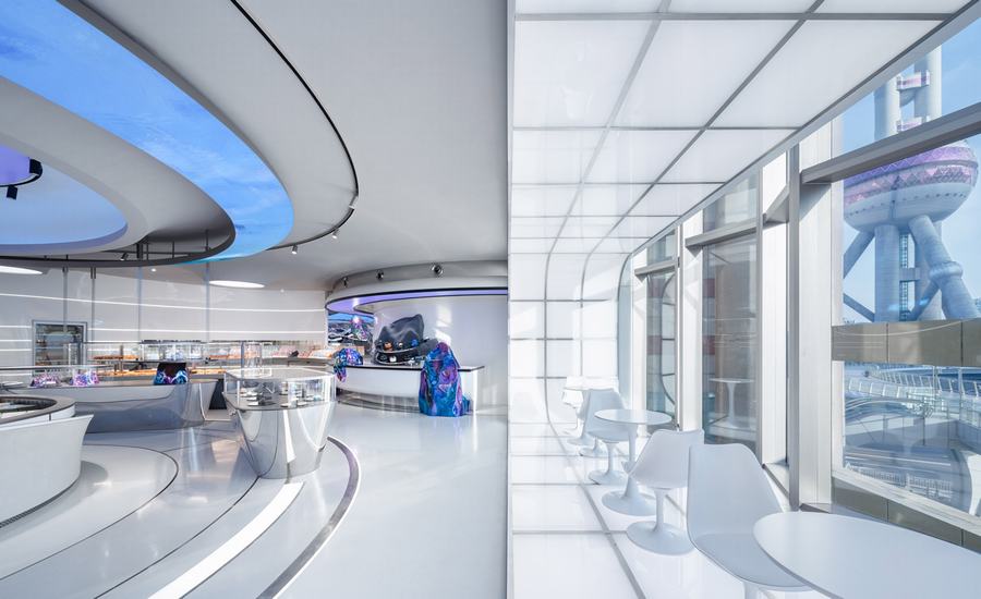 对无限时空的探索,或许是人类文明最原始的集体愿望之一,在科学技术大爆发后,成为一种雄心勃勃的未来叙事。生活在现代城市里的人们可能会幻想到外太空旅行,成为无数星星中的一员,或者勇敢地面对黑洞,将有限的三维视野与无尽的过去和未来并列在一起。在人类城市文明进化的巅峰——陆家嘴、浦东、上海,Holiland Travel在这里落地。Holiland 烘焙创意与SLT未来叙事空间设计碰撞出无限灵感——金属镜、陨石棒、悬挂发动机、外星人入侵……传播烘焙新概念,邀请旅行者触摸时空边界,与未来对话的同时,带来甜蜜的味觉体验。
