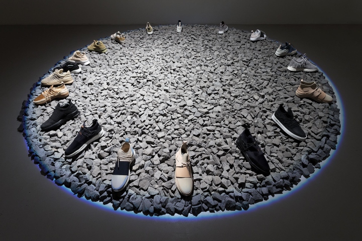 这些圈子与高度精致的运动鞋的对比,加上了这个空间令人惊讶的异化体验。